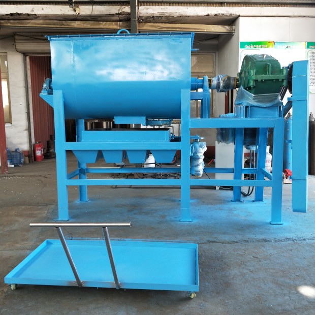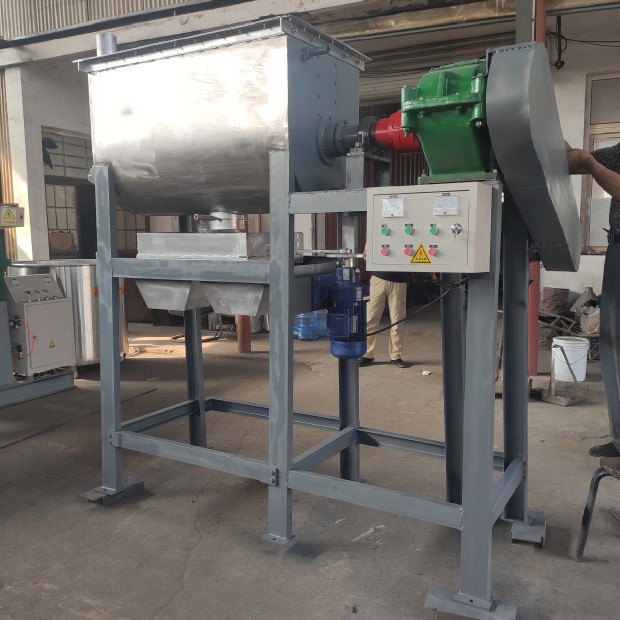 暖貼拌料機(暖寶寶混合機)是我公司針對于暖貼物料特性研發(fā)的一款螺帶式混合機。具有拌料快,混合均勻度高,放料干凈等優(yōu)點。可根據(jù)用戶需求選擇不同配置(碳鋼或不銹鋼材質(zhì),是否需要帶料啟動等等)。由于物料混合過程中需要加入水和鹽,會使物料在內(nèi)外螺帶上黏連。所以用戶每班次使用結束后應及時對筒體內(nèi)部進行清洗,以延長設備的使用壽命。以免因長時間使用而不清洗對螺帶造成腐蝕。